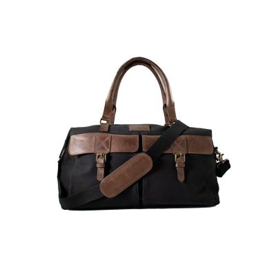 The Ariat duffel bag boasts a timeless design, combining sturdy canvas and refined leather accents. On its exterior, you'll find two front pockets secured by magnetic closures, as well as a rear pocket with a magnetic closure for added convenience. Inside, the bag is equipped with two open pockets and a zippered compartment to help you stay organized. It also features a detachable and adjustable strap for versatile carrying options.