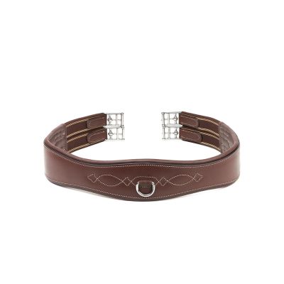 Leather overlay girth with white fancy stitched detail, strong elastic at both ends and stainless steel fittings