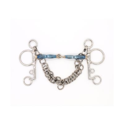 The Pelham 55 has attachments for two reins, one near the mouthpiece and one at the end of the shank. The Pelham 55 has the shortest shank (55 mm) out of our range, this will soften poll pressure and leverage on the mouthpiece and curb.