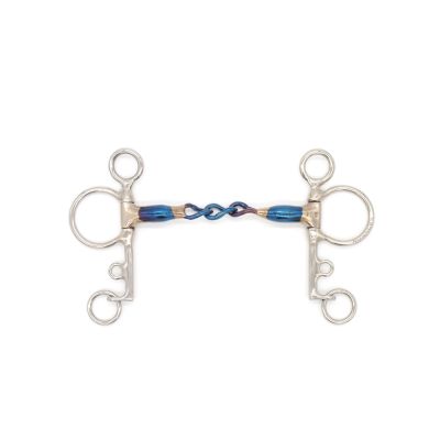 The Taylor Chain bit has an action between a Waterford and a Snaffle. The short length of twisted chain allows it to take the shape of the tongue and as a result distributing the pressure across the tongue like a Waterford. The ends of the mouthpiece act more like a Snaffle exertiung pressure on the bars.