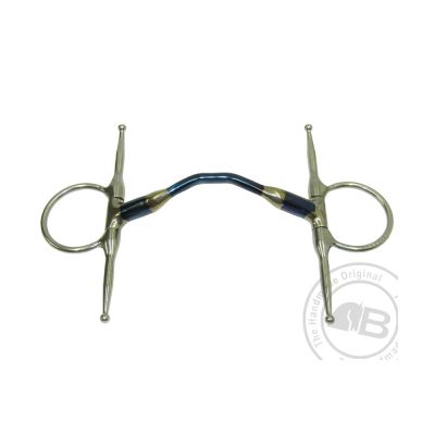 The Happy Tongue is a solid mouthpiece uniquely ported to give maximum tongue relief. The standard Happy Tongue is curved to be softer on the bars and slow in applying tongue pressure. This mouthpiece is made from blue sweet iron, meaning it is warm and sweet, helps bit acceptance, oxidizes easily, and encourages salivation. Please note, the blue color will fade with use, but the sweet taste will not.