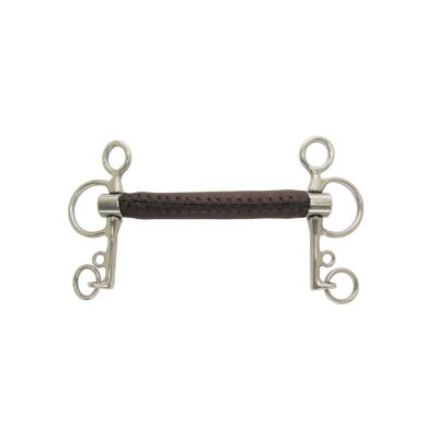The leather mullen mouthpiece is flexible, making it softer than the conventional steel mullen. It is also sometimes better accepted by the horse as it provides a natural, malleable surface. Flexible mouthpieces such as this wrap around the horse's tongue and bars, helping the leather distribute the pressure evenly over the contour of the horse's mouth. This bit also suits horses that object to a metal mouthpiece.
