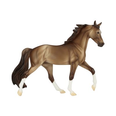 Ophelia is an exclusive Breyer Flagship Model, available only in Spring 2025. This stunning cocoa dun Tennessee Walking Horse features striking white markings and is sculpted on the beloved Bluegrass Bandit mold.