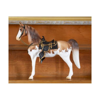 The horse that started it all! Sculpted by artist Chris Hess to originally adorn a mantelpiece clock, this iconic model has never looked better. He leads Breyer's 75th anniversary collection with a splashy red dun pinto coat, complete with his saddle, bridle, and breastcollar accented in gold. Look closer and you'll find dozens of tiny Breyer horses hidden in his pattern!