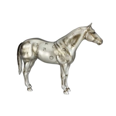 This special anniversary model was created on the Ideal American Quarter Horse sculpture, and features a unique metallic silver coloring that gives it a trophy-like appearance. The Best Remuda Award honors the ranches that bred quality horses that were athletic, versatile, sound and good-minded – the foundation stock of this highly popular breed. A tribute to the ranches and working horses that helped build the AQHA into the association it is today, each brand featured on the model’s coat represents an AQHA Best Remuda Award winner. This special-edition model has “AQHA 85th Anniversary” on its belly.