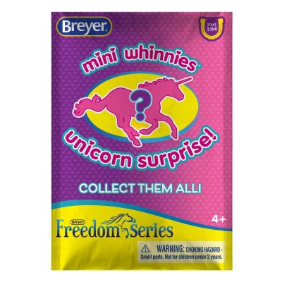 Mini Whinnies Unicorns! There are 8 different models, each in its own blind bag with sticker and mini brochure. These beautiful unicorns are sure to enchant any unicorn lover. And to make it more exciting, a random golden chase horse might be found in every 96 packages. (There is no guarantee of receiving a chase piece; it is a random shipment.)