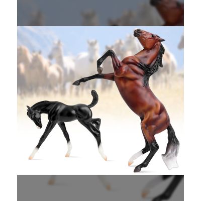 This new se features a proud stallion poised to protect his family, and his spirited young foal.