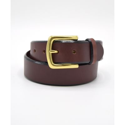 With beveled edges, this belt is an instant classic. Constructed of smooth, full grain leather, it will pull any outfit together. The gold-plated buckle is removable.