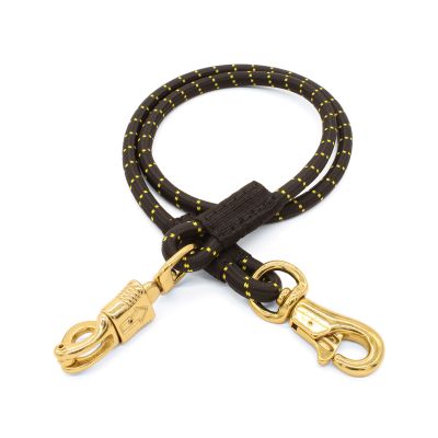 Firm strength Bungee Cross Tie is designed to reduce the effects of sudden shock when your horse is tied up. Heavy duty solid brass 4 3/4" panic snap on one end and solid brass 5" tongue snap on the other. Measures 9/16" diameter x 5 feet long.