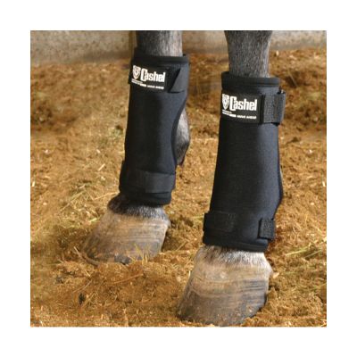 A simple solution for horses bruising and developing pressure sores on the foreleg as a result of being down with medical conditions or stalled on hard surfaces. Helps protect existing sores from further aggravation for faster healing. Neoprene exterior, soft fleece lining, and open back for added comfort. Adjustable straps allow the boot to fit a wide range of leg sizes. Wash in cold water, air dry.