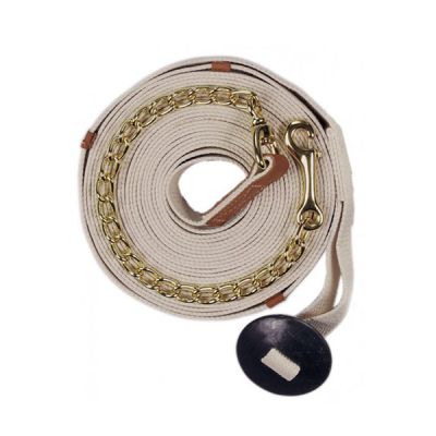 Pro quality. Strong cotton web with chain end and donut on handle. Lunge line is 1 inch wide and 35 feet in length.