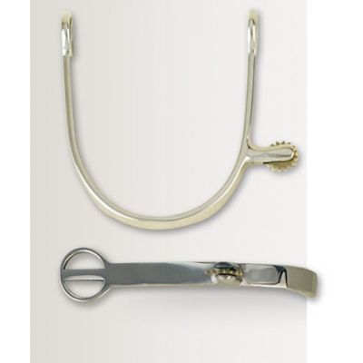Flat sided branches with small pointed rowel on the inside of the spur. Helps aid in giving leg signals without the rider having to turn the heel in to the horse. Lost wax cast and hand polished from the highest grade of 18/8 Stainless Steel. Lifetime guarantee against rust.