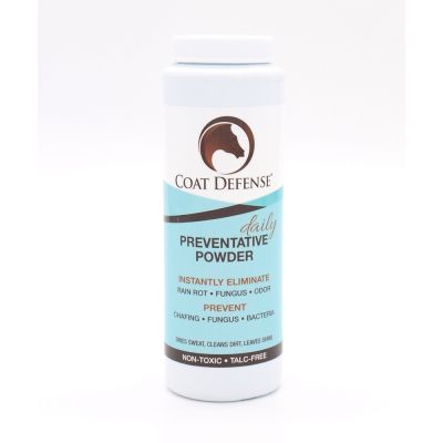 Does your horse ever get fungus or funk? Are they suffering from rain rot? Do they break out in hives from sweet itch or a reaction to insect bites? Do they itch and rub? Or get bald spots under fly sheets, blankets or tack? COAT DEFENSE® daily PREVENTATIVE POWDER is an all-natural, safe and effective solution that can help prevent and treat multiple equine skin ailments.