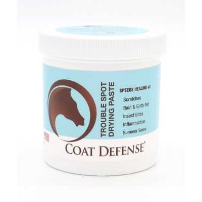 Does your horse suffer from scratches, mud fever, cannon crud or dew poisoning? Do they get hives, painful bug bites or even summer sores? Have they ever had a painful wound, laceration or proud flesh? COAT DEFENSE® TROUBLE SPOT DRYING PASTE is an all-natural, safe and effective solution that can help speed the healing of multiple equine skin ailments.