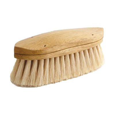 Kiln-dried, double-lacquered curved-back hardwood brush block with bleached white soft tampico fiber. Soft white tampico brush designed for light to medium general purpose body grooming.