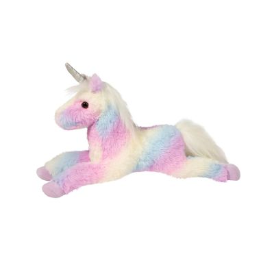 When you’re looking for a unique addition to your fairytale stables, Anita the Rainbow Unicorn stuffed animal is a worthy contender! Alluring bands of pastel rainbow colors make Anita especially soft and magical. Our fantasy pony’s lounging body style is perfect for cuddling up with after each imaginative session of make believe play. Her soft, velvety hooves have been lightly weighted with beans for a lovably floppy feel, while large eyes and a glittery, iridescent horn will captivate and mesmerize young fantasy lovers. Don’t let the magic slip away, throw a bridle on this exceptional fantasy creature and make Anita the plush Rainbow Unicorn your own!