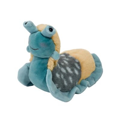 Laverne is a whimsical plush Slug who’s never in a hurry! She likes taking her time and pausing to nibble plants and leaves as she travels. A muted color palette of slate blue and tan colors lends her a sophisticated appearance, while undulating ripples of soft plush fabric at Laverne’s sides make her look as if she’s moving. Light catching blue eyes on long eye stalks accentuate Laverne’s lovably eccentric expression. To complete her design, we’ve dappled her back with pale colored spots and accented her cheeks with gentle rosy airbrushing. When you have Laverne the Slug stuffed animal as your friend, it’s easy to remember to take time to slow down and enjoy the little things!