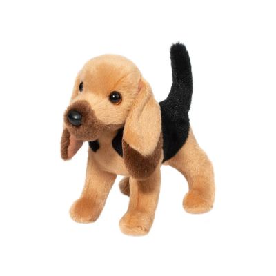 When Trapper the Bloodhound stuffed animal is on the trail, there’ll be no escaping his highly developed sense of smell! While they were originally used to hunt wild animals, Bloodhounds have become famous for tracking down people. Trapper’s long, floppy ears help sweep scents up towards his nose when he’s following a trail. As he works, his long, black tail waves high and proud above his back. We’ve finished Trapper’s appearance with soulful, amber colored eyes and a sculpted, black nose. When it comes to search and rescue or putting the bad guys behind bars, you can count on the success of the mission when Trapper the plush Bloodhound is involved!