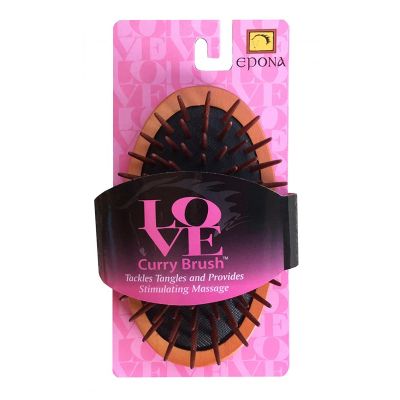 Watch your horse instantly relax and fall in love while being groomed with the LOVE Curry Brush. Wooden flexible, extra-long bristles provide a soothing stimulating sensation to your horses body while loosening deeply embedded dirt and dander. And, this unique ultra-light wooden brush glides through mane and tail tangles flawlessly for a perfect flowing finish.