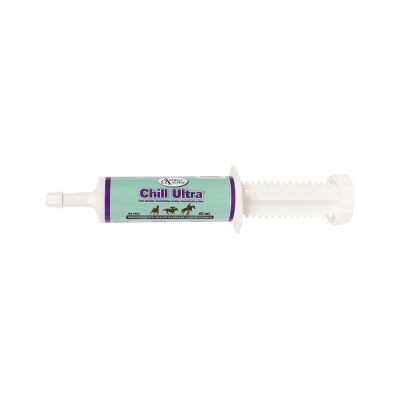 Omega Alpha Chill Ultra - This convenient oral syringe makes it easy to bring Chill Ultra Paste on the road, providing a calming effect for excitable horses while reducing anxiety and stress. This concentrated formula offers the same focusing benefits as the original Chill, with added B1 and magnesium for enhanced muscle relaxation. Comes in a 60cc syringe with adjustable dosing.
