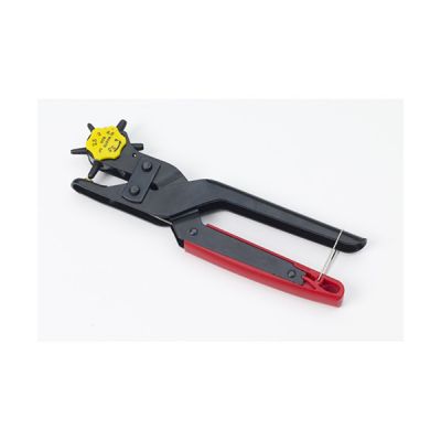 Heavy duty leather punch with 6 revolving tubes offering a variety of sizes.