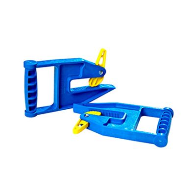 The EZGrip Mat Mover's self-adjustable grips fit any size mat up to 3/4 inch thick and auto-locks for a tight hold. Comfortable, recessed handle provides a secure grip. Just slide the edge of a dry mat into the EZ Grip slot and the spring-loaded cam/grip locks on instantly and holds tight. Then release the mat by pushing the lever forward. Great for moving plywood and carpet, too. High-impact construction is rated to move up to 300 lbs. Proudly made in the USA.