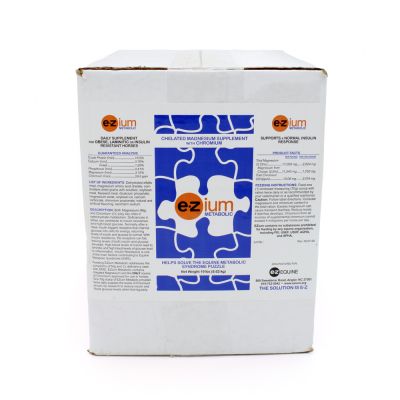 EZium Metabolic is a daily magnesium supplement with added chromium. Elevated levels of insulin and glucose are typically associated with Equine Metabolic Syndrome (typified by obesity, insulin resistance, laminitis). When under stress, horses release the stress hormone cortisol. The form of chromium in EZium Metabolic has been proven to reduce not only insulin and glucose but also cortisol levels in the blood. Feeding EZium Metabolic daily reduces the negative health impacts associated with magnesium and chromium deficiency in obese, laminitic, insulin-resistant, and horses under extreme stress.