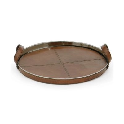 Stylish Chapin Tray Made Out Of Brass & Leather With Wood Finish.