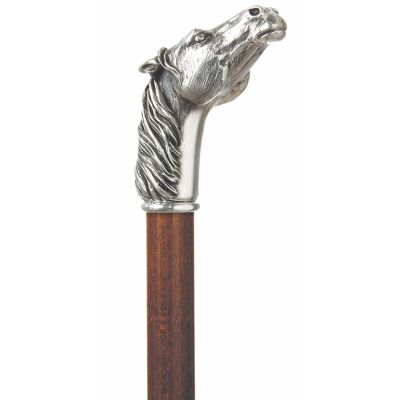 From Italy, a silver plate horse head handle mounted on a lacquered natural beechwood 36" shaft.