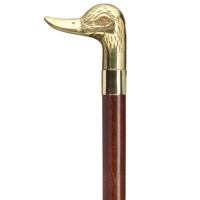Solid brass duck head handle with brass band mounted on a lacquered hardwood shaft.