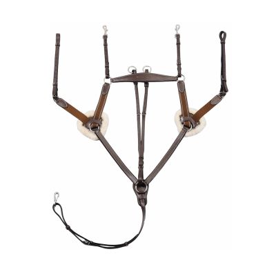 The Henri de Rivel Pro 5 Point Elastic Breastplate Martingale with Running Attachment allows freedom of movement in the shoulder while holding the saddle in place. The included running attachment encourages flexion at the poll while allowing freedom of movement. Removable fleece pads make for easy cleaning of sweat and dirt to inhibit mold and skin irritations.