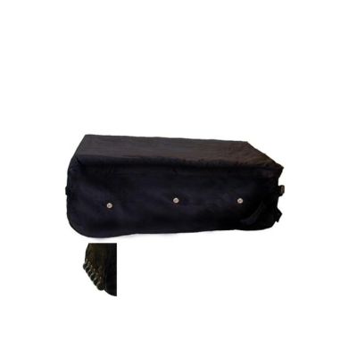 Hay on wheels! This long wearing, vinyl coated, 600 denier nylon Rolling Bale Bag with eight sturdy web handles and six heavy duty plastic wheels allow for easy portability at the stable or horse shows. This unique bag is designed with six vent holes and and a two way zipper for easy loading and access. Conveniently accomodates a large two wire bale, keeping hay dry and minimizing flake loss. Measures 45" long x 24" wide x 14" high.