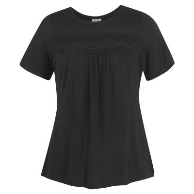 Lucky horseshoes are woven into the intricate, exclusive EQL lace of this pretty, feminine top that pairs perfectly with printed and solid bottoms. Fabric-backed for coverage, the lace is underscored by soft shirring that falls softly below the feminine front yoke. The hip-covering length flatters and lets you add a fun twirl as you turn around to grab another bottle of chardonnay.