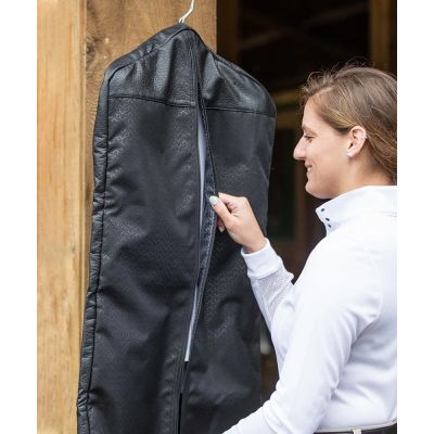 This classically styled clothing carrier features Kerrits subtly embossed Chevron Bits design with faux leather accents to highlight riders' style while keeping their show clothes contained in durable, easy to clean water-resistant fabric.