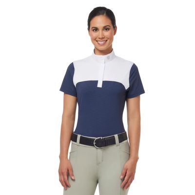 - Fitted, short sleeve silhouette has a polished look that is perfect for clinics and fits smoothly under your show coat