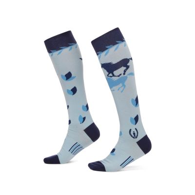 Lightweight Knee-High Boot Socks – Comfort & Breathability for Equestrians – Designed for riders, these knee-high socks feature a fun galloping horse and floral pattern, coordinating perfectly with Kerrits favorites. Crafted from a soft cotton blend, they keep feet cool and comfortable in warm weather, while offering support and durability for long days in the saddle.