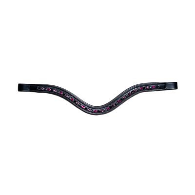 The KL Select Blackberry Curved Browband, crafted from gently padded black leather, serves as a stunning enhancement to your dressage horse's bridle. Its U-shaped design showcases a sequence of crystals in Dark Pink, Light Pink, Black, and Grey, adding an immediate touch of style and flair!