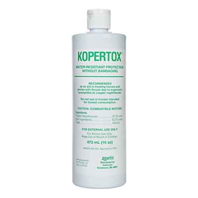 Details:- General directions: Clean the hoof thoroughly, removing debris and necrotic material prior to application of KOPERTOX; apply daily to affected hoofs with a narrow paint brush (about 1 in.) until fully healed