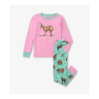 Saddle up for a great night's sleep with this Western horses pajama set! Made from soft, breathable cotton, it’s perfect for little cowgirls who love comfort and adventure. Whether she's dreaming of open pastures or morning cartoons, these PJs keep her cozy. Yeehaw for bedtime fun!
