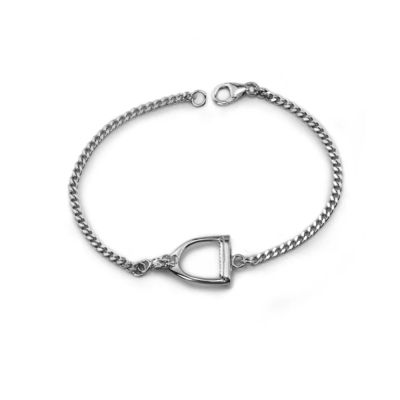 This beautifully detailed sterling silver english riding stirrup has a reticulated stirrup pad and leather look bale. The equestrian styled curb chain is strong and flexible whith a substantial balloon catch. Every day is a good day to wear this bracelet.