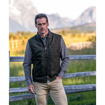 Madison Creek's Asheville vest dresses up any attire for an evening out. The fabric is made from 100% wool from Abraham Moon & Sons.