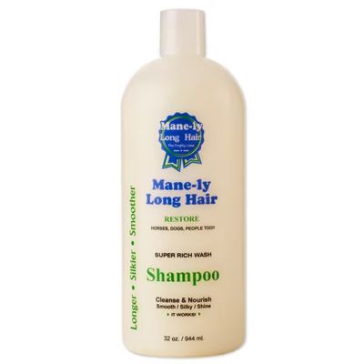 The Mane-ly Long Hair Restore Shampoo helps restore, cleanse, and shine. A gentle deep cleaning formula with extracts of ginger root, jojoba seed, rosemary leaf, and Panthenol B 5. This specialized formula works to make hair clean, manageable, and hydrated while adding loads of body and shine. The Restore Shampoo works well on all color variations and all hair types (including short hair!). This shampoo lifts out stains without destroying hair or turning blue or silvering. Also works especially well on yellowing stains created by urine and manure. Whether you are headed for the show ring, training, pampering, or looking to give your horse a deep clean you will love Mane-ly Long Hair Restore Shampoo.