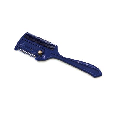 Fine tooth comb on one side, comb teeth with razor blade on the other.