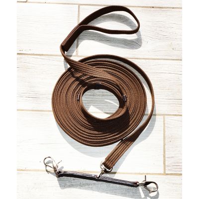 Nunn Finer's Beyond Complete Equestrian Lunge Line is made from the finest 100% Cotton Webbing Lunge Line on the market today. Line is 35 foot long with a sewn in lunging attachment so the attachment is always available when you need it. It ensures lunging without annoying re-buckling when changing hands as well as the safety of having two snaps attaching lunge line when using. Heavy-duty and durable. The snaps and the swivel are nickel-plated.