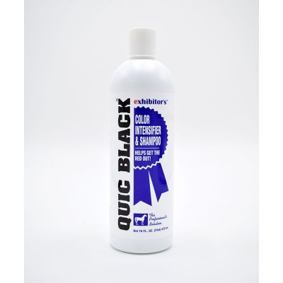 Intensifites black and reduces reds in black coats. Quic Black is at its best on dark coats. Producing saturated, rich color with brilliant highlights, Quic Black Color Intensifier & Shampoo restores color to clipped or sunburned coats. The easy rinse formula is free of harsh chemicals and has a neutral pH, and easily removes scuff and stains. Leaves coat soft, smooth, and shiny.