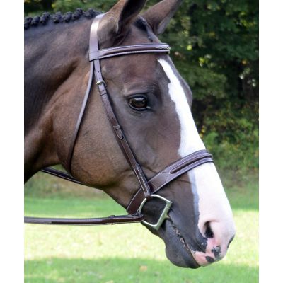 The Sonoma is a newer addition to the Red Barn Hunter Bridle collection, differentiated by its narrow round raising and detailed stitching accents. The Sonoma Bridle offers a timeless look with a 1 1/4" round raised fancy stitched noseband, a matching 3/4" browband, and 1/2” cheek pieces. The Sonoma design is low profile and is not padded. Comes complete with 5/8" fancy stitched round raised Laced Reins. All hardware is stainless steel, with hook stud ends and a roller-buckle on the noseband. This bridle is made of the finest Grade A English Sedgewick’s leather and is is traditional style.