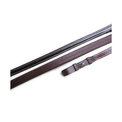 The 5/8” Rubber Reins with square raised, fine white stitching on the leather ends. Hook stud only.