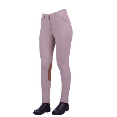 Introducing the Ladies Jod in Meryl Active Tech Fabric, a remarkable addition to your equestrian wardrobe. Crafted from a 4-way stretch fabric, this jodhpur moves harmoniously with your body, ensuring unrestricted movement during your rides. Emphasizing comfort and functionality, the breathable and moisture-wicking fabric keeps you cool and dry even during intense training sessions. The jodhpur's design features a mid-rise with a 2" waistband, providing a flattering fit and secure feel. For added style and practicality, it boasts a Euro seat and belt loops. Furthermore, the inclusion of two front pockets offers convenient storage options. Notably, a striking contrast rust knee patch enhances durability and complements the overall look. Finally, the jodhpur is equipped with an adjustable strap at the bottom, allowing you to customize the fit according to your preference. Elevate your riding experience with these exceptional jodhpurs that merge fashion and functionality flawlessly.