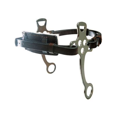 This is an English Hackamore which makes up part of the bitless bridle. Although this bridle has no bit it is still potentially quite severe as it works the nose and poll.