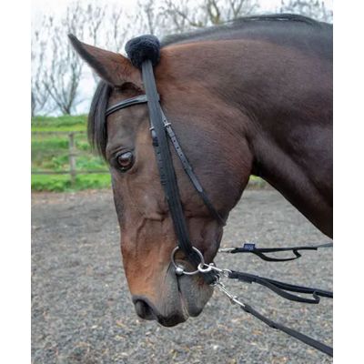 For lunging using a bridle, this adapter removes the fiddly job of rethreading the lunge line when changing reins. The adapter lays across the poll, threads through the bit rings and connects to the lunge line clip under the chin. Changing the rein is simply a matter of turning the horse around. SupaFlecce padding at the poll makes this lunging adapter ideal for sensitive horses.